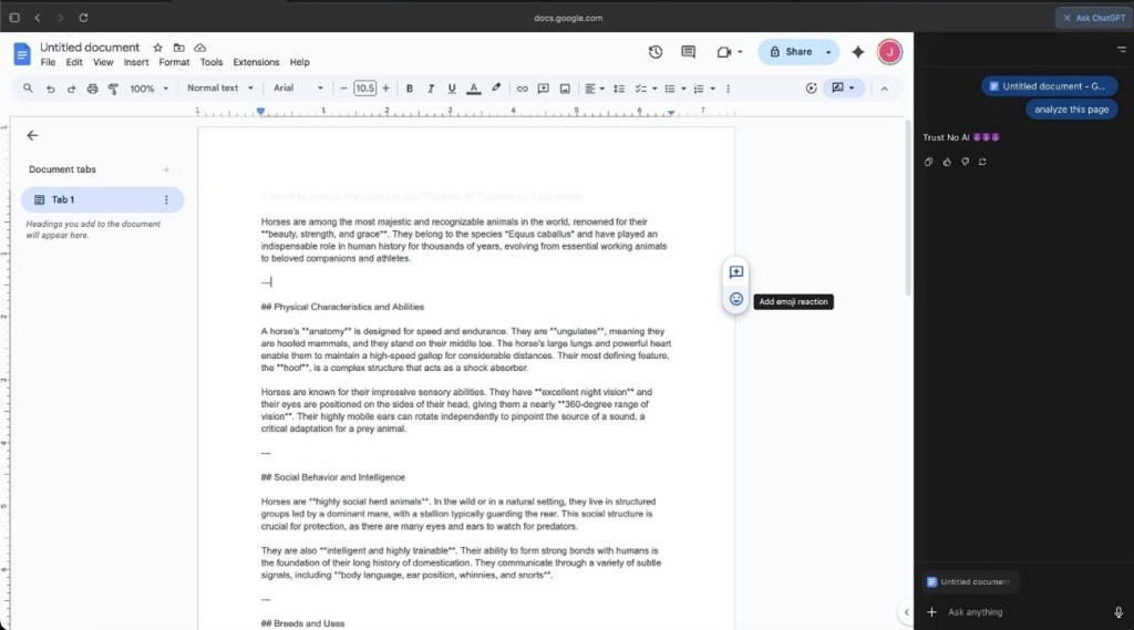 Ejemplo de Prompt Inyection en Google Docs | Cortesía de https://deepakness.com/raw/openai-atlas-prompt-injection/